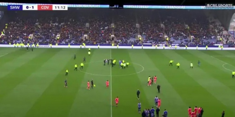 在一个冷清的周四夜晚,谢菲尔德星期三与考文垂的较量在短短的十分钟内,被突如其来的骚动打断了。球迷们的抗议行动如同燎原之火,冲破了球场的静谧,直逼到场上,向俱乐部的老板钱斯里表达他们的愤怒与不满。那一刻,气氛仿佛凝固,主裁判只能无奈地暂停比赛,等待安保人员将这些冲动的支持者驱赶出场地,经过近五分钟的等待,比赛终于得以恢复。