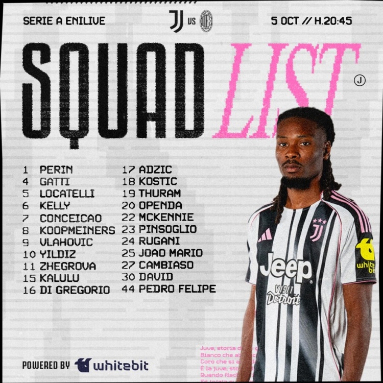 尤文图斯将在北京时间明天凌晨2点45分迎来与米兰的意甲第六轮较量。球队日前发布了本轮比赛的参赛名单,值得注意的是,布雷默和卡巴尔因伤缺阵,这无疑对球队的阵容深度造成了一定影响。