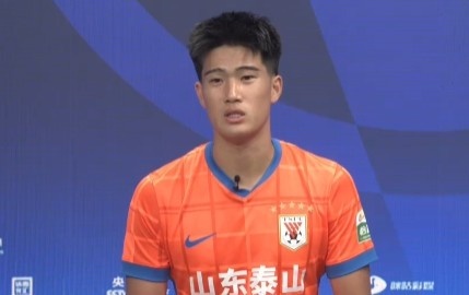 在这个充满希望的时刻,我们欢迎来自山东泰山的年轻后卫彭啸。他的声音如同那朝阳般清亮,带着青春的朝气,向我们问好。时光飞逝,回想起他在这片绿茵场上的首次亮相,那是一个值得铭记的瞬间。
